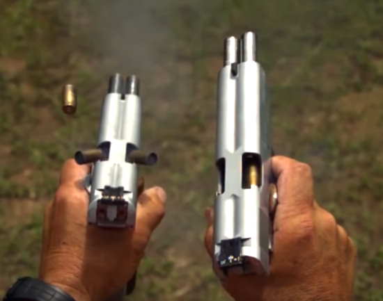 Двумя стволами мало кого удивишь, но бывают исключения. Например двухствольный пистолет AF2011, созданный итальянской компанией Arsenal Firearms к 100-летию легендарного Кольта 1911. Фактически эта два пистолета в одном корпусе с двойными магазинами, но общим затвором. Есть и более компактные образцы вроде многоствольного револьвера S333 Thunderstruck, который стреляет исключительно дуплетами.