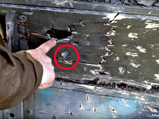 Далее следует обстрел ВОГами — граната ГП-25П (прыгающая) врезалась в ящик, отскочил и посекла ящики снаружи. Еще парочка таких же взорвались рядом.
