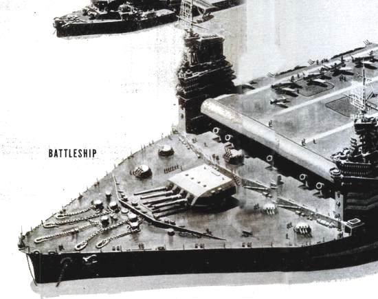 Далее про «Бисмарк» и «Тирпиц» и более экзотические боевые суда как например гигантский, деревянный, испанский, 140-пушечный линкор «Святейшая Троица», построенный на Кубе из красного дерева.