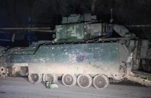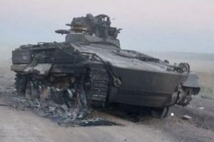 Западнее Авдеевки, район н.п. Бердычи. Итого третья машина «Абрамс» уничтожена. Хваленый американский танк потерял гусеницу от выстрела РПГ, был обездвижен и буднично добит. Дело было у н.п. Бердычи, сражение у которого идет не первый месяц — там наши войска двигались чтобы замкнуть северную «клешню» и закрыть котел. Не пришлось: ВСУ бежали, а разрекламированная 3 ОШБР ВСУ «Азов», состоящая из отборных […]
