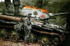Почти 80 лет никто не знал, где и как погиб этот танк. Если присмотреться, то под правой гусеницей можно заметить колесо немецкой пушки. На фотографии экранированный КВ-1 Кировского завода, выпущенный в июле 1941 года. На некоторых фотографиях именно этой машины позировали немецкий солдаты из дивизии СС, позже была обнаружена фотография, на ней запечатлен доклад офицеру СС, у которого можно различить […]