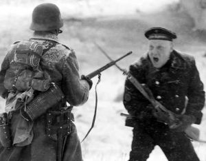 «Перед началом седьмой атаки старший лейтенант Ямонин приказал мне не пропускать противника через ров, которым была прикрыта дорога, а вход был возле разрушенного дома. Мы схватились в рукопашной схватке, и тут немцы, хоть и пьяные были — рассмотрели наши тельняшки и бескозырки, начался немецкий крик: «Марине! Марине!».Когда под прикрытием сильного огня немцы ринулись на наши позиции я увидел трех немцев, […]