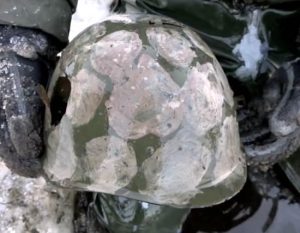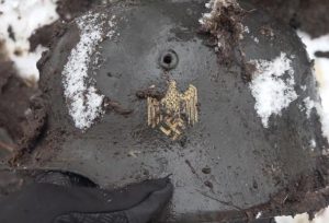 Снайперская СВТ-40, противотанковое ружьё, боеприпасы, ящик с минами как новый, котелки, винтовки — всё это можно найти в дальней части болота только зимой на поисковый магнит. Все находки по зимним боям 1943 года и особый интерес представляет советская каска с необычным зимним камуфляжем, который на западе называют «коровьим».В том же месте тогда была найдена каска со спиральным рисунком, но в […]