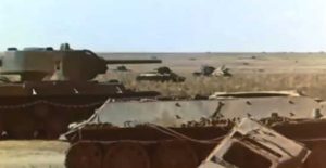 Цветная хроника со звуком и увеличенной частотой кадров до 60 FPS. Снята по всей видимости спустя несколько дней после интенсивных боев, так как техника выглядит только что брошенной. На первых кадрах уничтоженный советский эшелон с техникой и продовольствием: немцы разгружают мешки с мукой из поврежденных вагонов, паровоз сгорел, советские поврежденные танки Т-34 и КВ-1, а так же установка «Катюша». Там […]