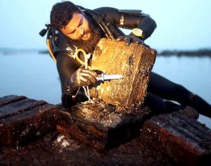 Первые погружения были на 6-7 метров с постепенным путешествием по дну на глубину. Течение русла Невы достаточно сильное — «встаешь на колени, тебя переворачивает и тащит до ближайшего бревна». Теперь же было погружение сразу на 17 метров, чтобы не унесло течением использовались «рифовые крюки».Поисковики сразу находят на дне сколоченный гвоздями и стянутый тросами плот. Рядом с ним гранату РГД-33, снаряд […]