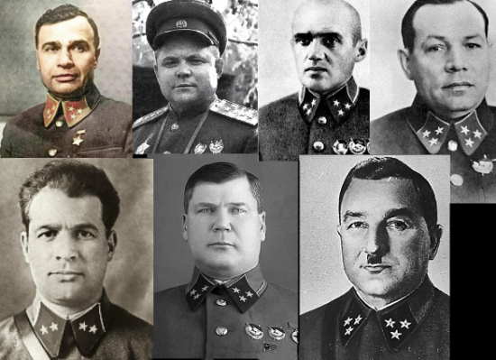 Далее про генералов: погиб Андрей Смирнов при попытке прорыва из окружения, Кузьма Подлас погибший во время третьей битвы за Харьков в 1942, Иван Богданов ранен во время артобстрела, Иван Черняховский ну и конечно гибель Ватутина.