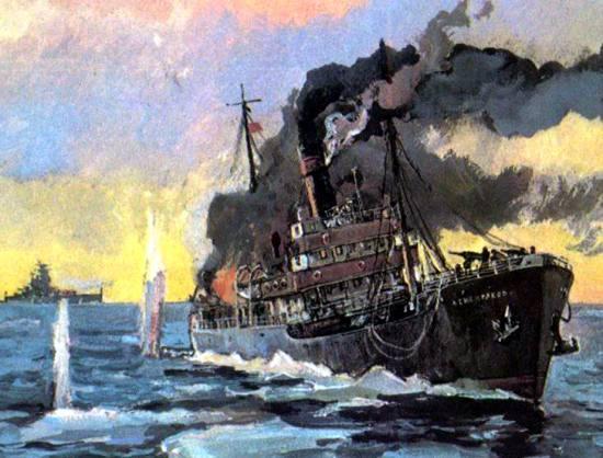 Об этом подвиге экипажа ледокола мало кто знает. Молодой 32-летний капитан из Грузии и весь интернациональный экипаж приняли последний бой. Выжили только 13 человек. Кочегар Вавилов доплыл до ближайшего острова и один не попал в плен.