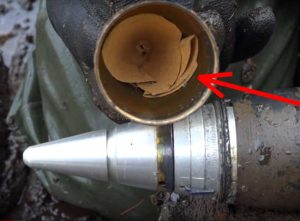 Первыми из замерзшего болота выходят два неплохих ППШ, затем появляется первый снаряд — УЗ-354Т с пулевой шрапнелью, 1939 года производства. Верхний скручиваемый колпак, правильно называется — дистанционная трубка Т-6. Скрутив её поисковики из отряда «Юрий Гагарин» обнаруживают внутри бумажный вкладыш, который за 80 лет даже не промок. Далее идут бронебойные 76-мм снаряды, несколько ящиков с пулеметными лентами, хомут лошади и […]