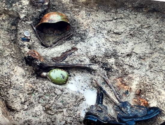 Но главная новость в другом. Весной этого года в 300 метрах от памятника, холдинг начал строить складские помещения. Сразу были найдены санитарные захоронения, рва и костями десятков погибших ополченцев и красноармейцев. Но вместо поисковиков, холдинг пригласил крепких парней, чтобы не пустить на территорию стройки поисковиков. Экскаваторами кости выгребались из братских могил и вывозились в неизвестном направлении.