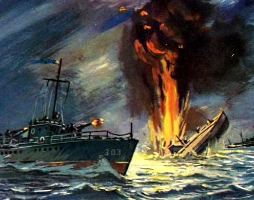 Находясь в дозоре, «Морской охотник» МО-105 обнаружил немецкую подлодку, однако ей удалось уйти. Командир приказал застопорить ход и в этот момент раздался взрыв… выжило 7 человек.