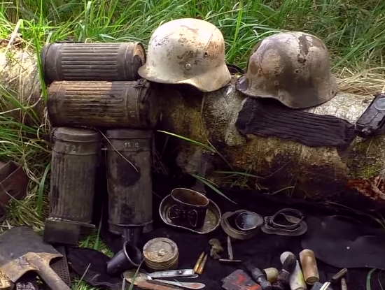 Непонятно почему немцы бросили всё свое имущество — от бритв и газбаков, до касок и сапогов, но всё это так и лежало присыпанное землей со времен войны почти 80 лет. Блиндаж по зимним боям 1943-1944 и чаще всего подобные блиндажи — пустые.Автору видео повезло, число находок из этого блиндажа превышает все его ожидания, судя по четырем газбакам, немцев так же было четверо. В прошлом видео он откопал две каски, а в этом докапывает всё остальное.
