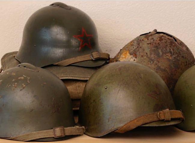 — советская каска СШ-39 (с ранней звездой и пряжкой подбородочного ремня);