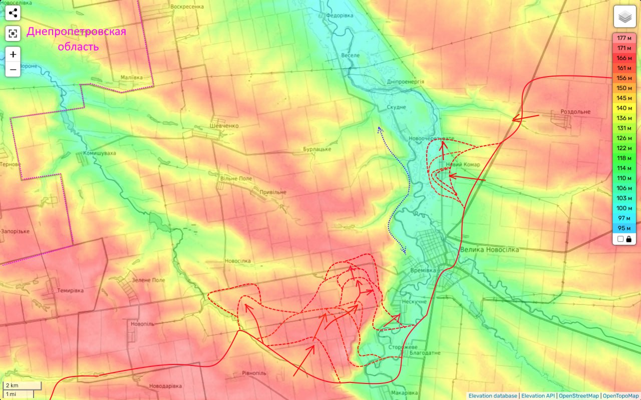 А происходило очень и очень многое. Начну традиционно с Больше-Новосёловского направления, где наши части продолжали сжимать удавку над гарнизоном ВСУ в Большйо Новосёлке и сумели продвинуться еще на одном участке к дороге на Гуляйполе.