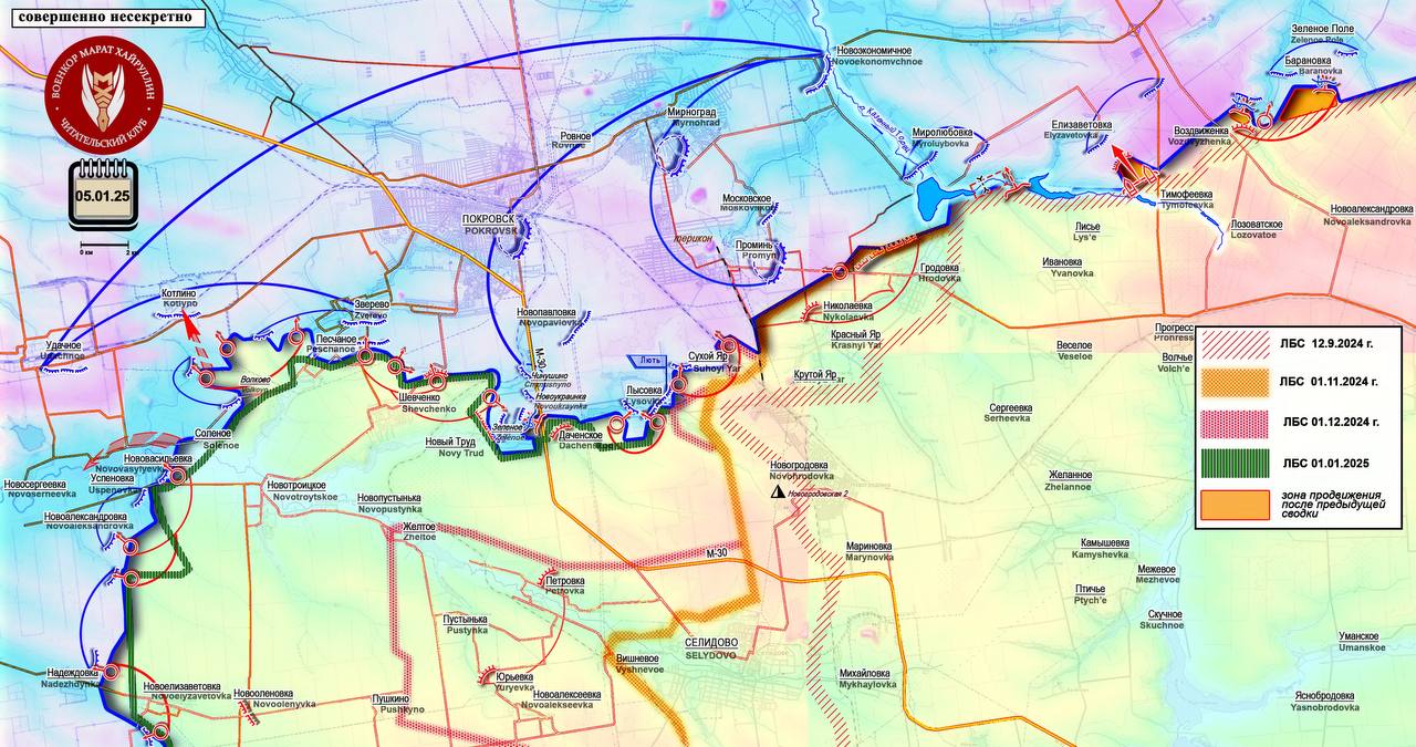 На Красноармейском направлении тоже жарко. Нарезка от МО РФ. Уничтожение пехоты и техники противника. ВС РФ продолжают наступление к югу от Красноармейска, а также давят в районе Воздвиженки. Зимняя кампания 2024-2025 интенсифицируется.