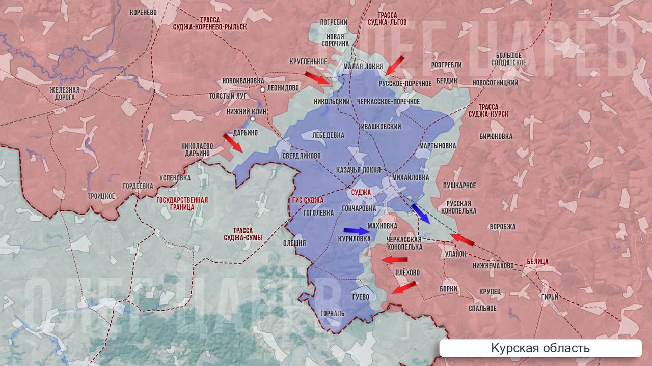 Попытка прорыва ВСУ шла в направлении села Уланок, и противнику удалось вклиниться в нашу оборону на глубину до пяти километров, почти до окраин села. По наступающим колоннам ВСУ наши военные били артиллерией и дронами, но часть техники противника смогла высадить в окрестностях Уланка пехоту. Сейчас там продолжаются бои, с мест сообщают, что в село оперативно переброшено наше подкрепление.