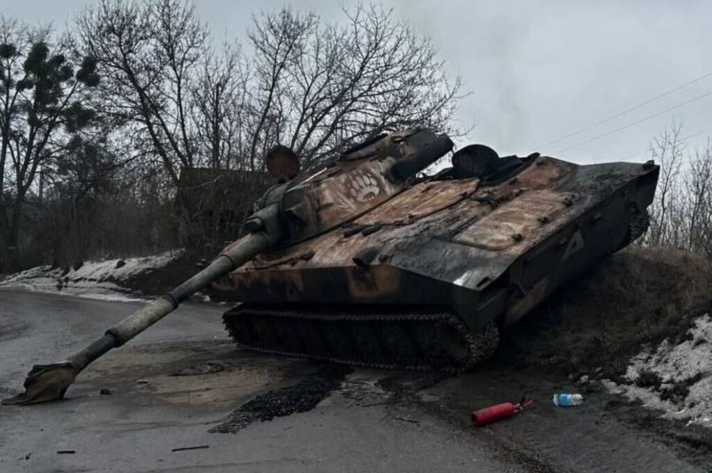 FPV-расчётом группы Вани Иванова поражён немецкий танк Leopard 2a4. Остановлен на подъезде к Покровску.