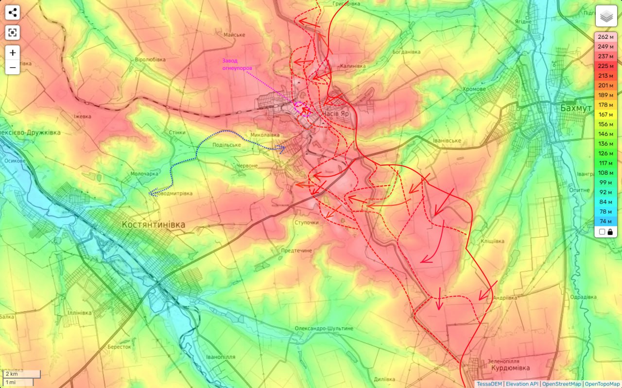 Как вчера и сообщалось, наши части добились значимых успехов в центральной и северной части города. Большая часть завода огнеупоров нами взята, а потому уже скоро перед гарнизоном противника встанет дилемма — либо уходить, либо вести бои в западной части Часова Яра на невыгодных в оперативном плане позициях.