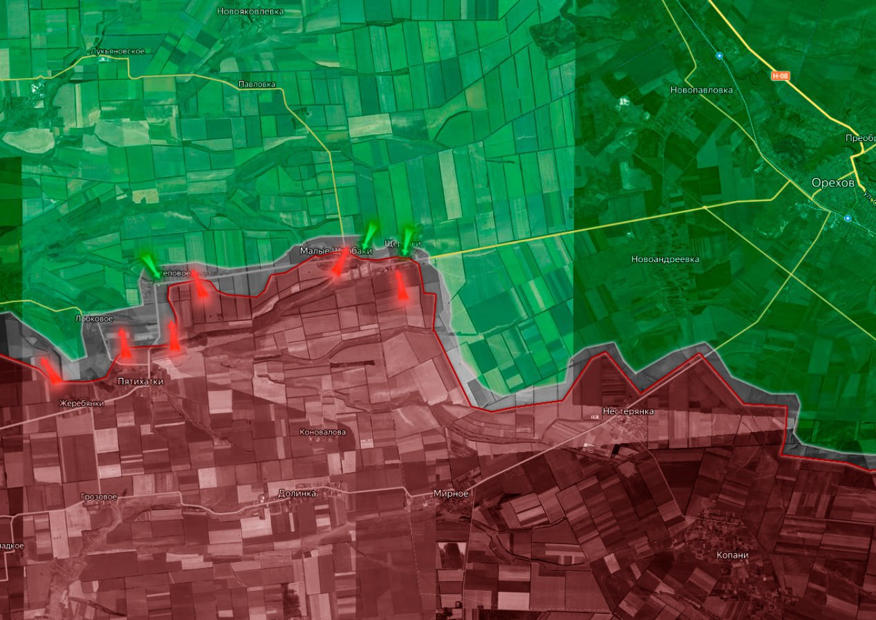 На Запорожском направлении российские войска ведут наступательные действия на широком участке фронта от Каменского до Гуляйполя, сосредотачивая усилия в районах Щербаков и Малых Щербаков.