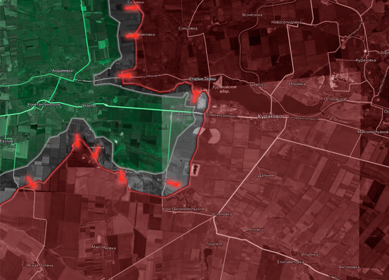 На Кураховском направлении ВС РФ наступают к западу от захваченного Курахово атакуя Дачное и Янтарное. Дачное «стирают», также пехота РФ замечена в районе очистных сооружений,западнее Курахово.