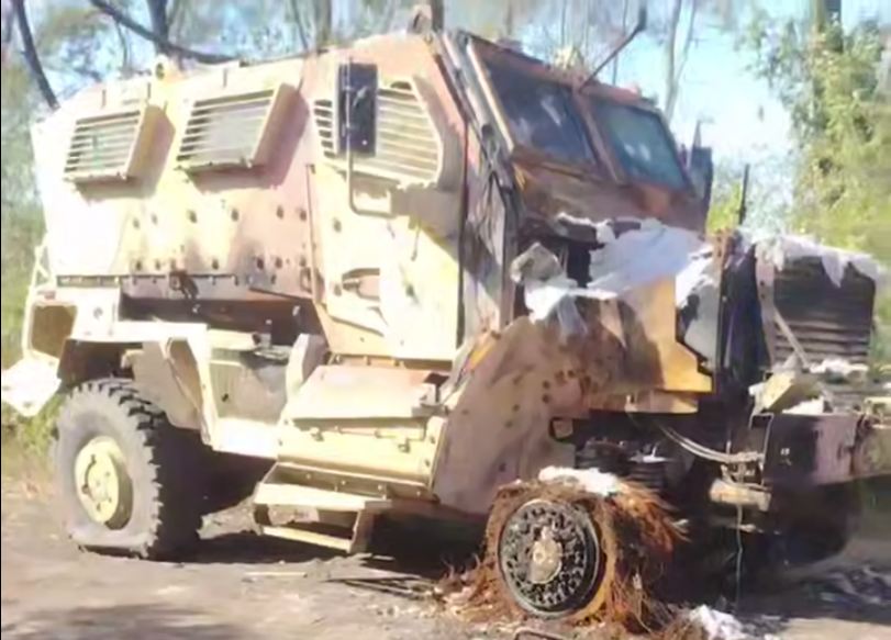 Еще одна успешно уничтоженная украинская колесная САУ 2С22 «Богдана» на базе Tatra, где-то на фронте