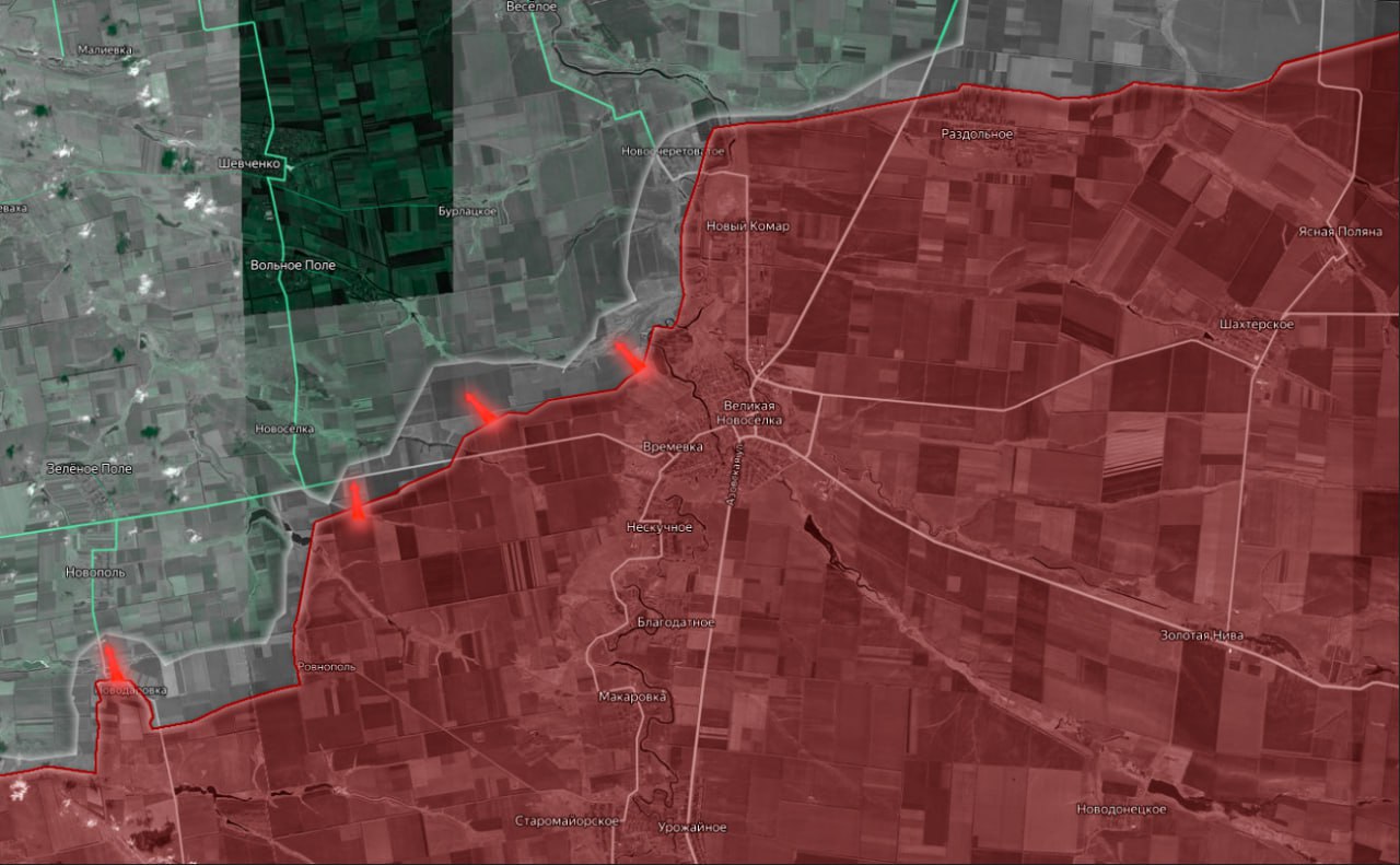Российские подразделения достигли значимого тактического успеха в районе западнее Великой Новосёлки, где им удалось закрепиться на новых позициях. Это продвижение имеет существенное значение для общей оперативной обстановки в данном секторе, так как позволяет расширить зону контроля и создать более благоприятные условия для дальнейших действий.