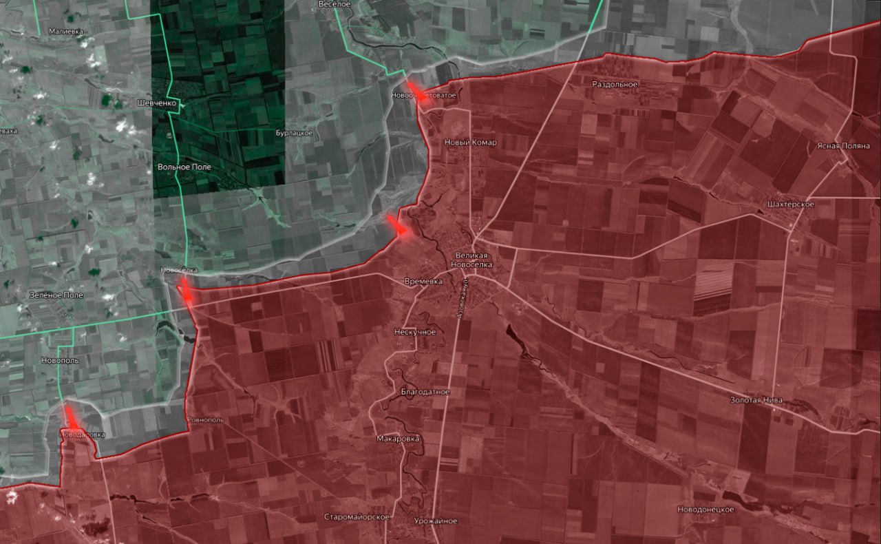 В районе, расположенном севернее населенного пункта Ровнополье, зафиксировано тактическое продвижение подразделений Вооруженных Сил Российской Федерации в направлении Новоселки, где в результате успешных боевых действий российские военнослужащие установили контроль над южной частью данного населенного пункта.