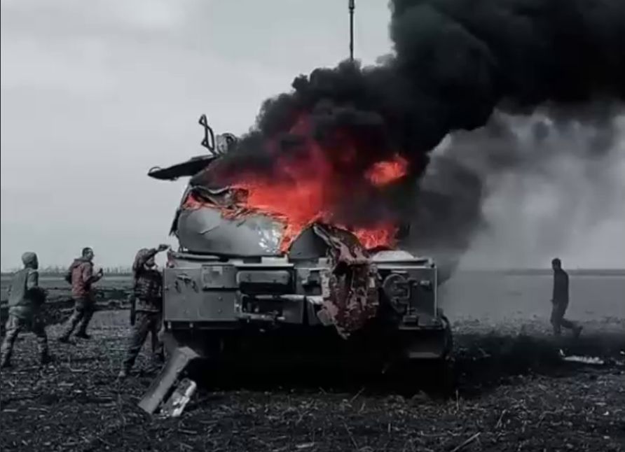 Красиво горит!!! Уничтоженный украинский самоходный зенитный ракетный комплекс «Бук», где-то на просторах СВО.