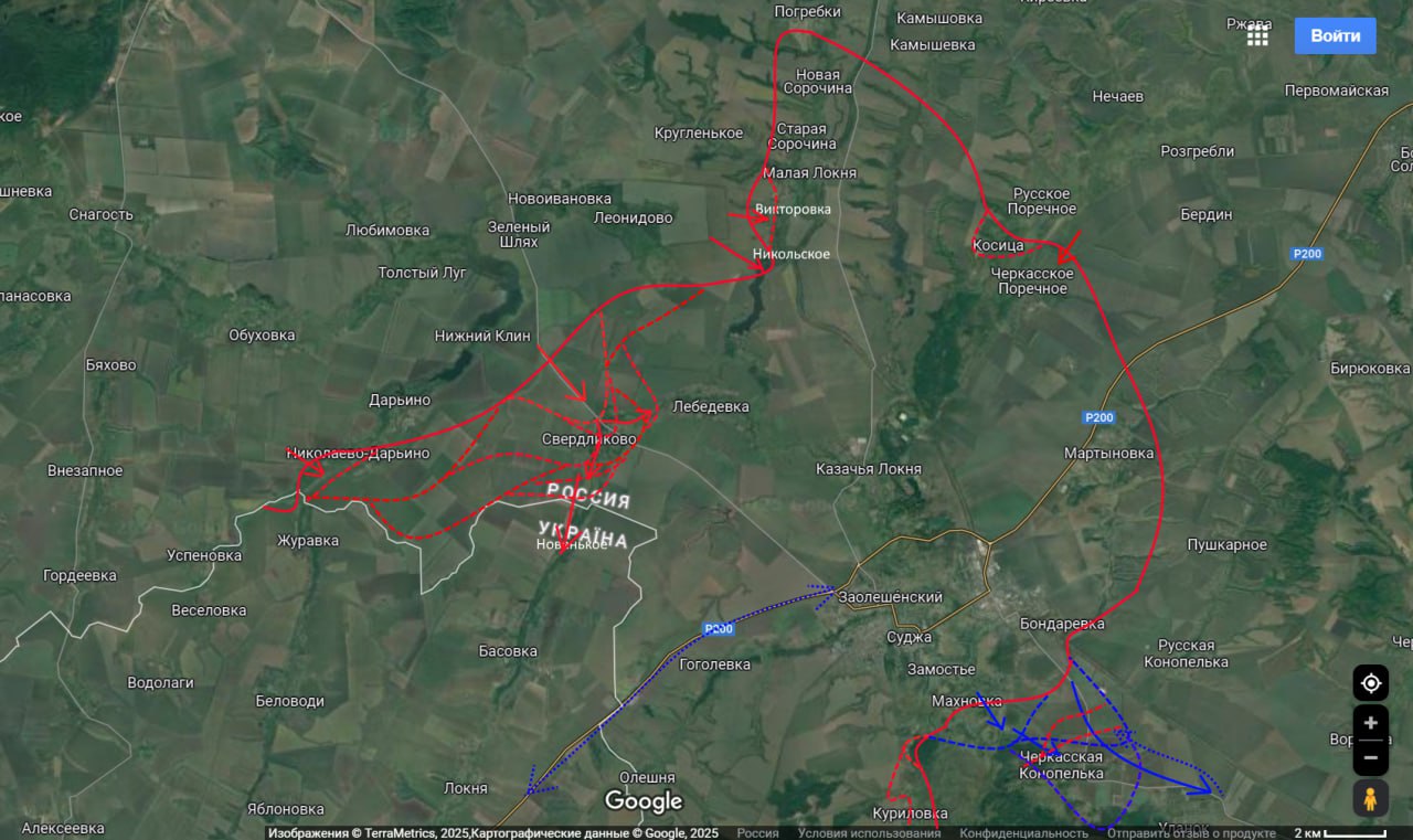Российская армия вошла в Сумскую область… Об этом только что сообщил наш президент. Ну и раз президент это озвучил, то не вижу смысла дальше тоже этого скрывать. Зашли мы со стороны Свердликово на Новенькое (и вероятно далее пойдем на Басовку), развивая достигнутый накануне успех. Смысл в этом прямой. Во-первых, мы таким образом обходим очень неудобную для штурма позицию противника. А еще мы здесь можем физически выйти на главную трассу снабжения Суджанской группировки ВСУ. Что ускорит ее вначале окружение, а потом и разгром. То есть пока это, конечно, не полноценный заход в Сумскую область большими силами. Но очевидно, что после освобождения территории Курской области, здесь будет создаваться зона безопасности.