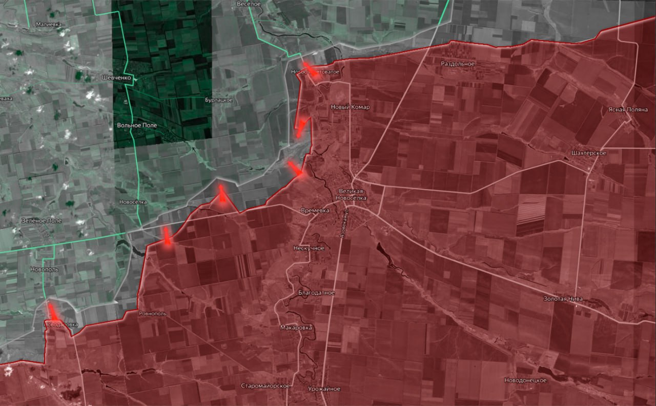 На Времьевском направлении ВСУ предприняли контратаку в районе Новоочеретного, пытаясь вернуть утраченные накануне позиции, однако безуспешно. Одновременно украинские подразделения пытались отбить Новоселку, которая ранее перешла под контроль российских войск. В свою очередь российские силы продолжают наступление вдоль реки Мокрые Ялы, закрепившись в южной части Новоочереватого.