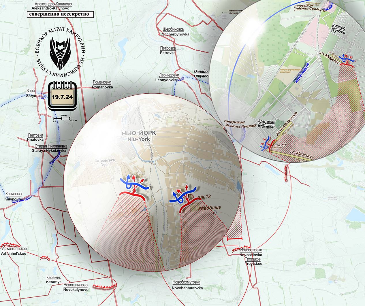 Также на Торецком участке Донецкого направления наши вооружённые силы продвигаются в центре н.п. Новгородское (Нью-Йорк), где выбили противника с территории школы №18, посадок восточнее неë и территории кладбища.