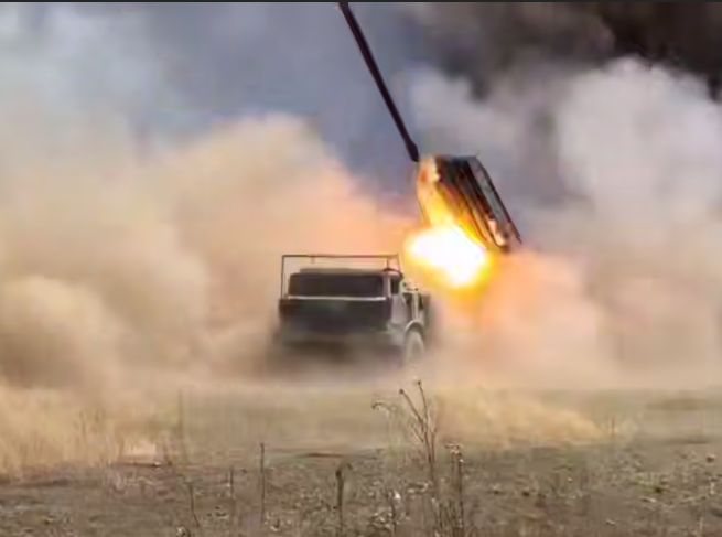 Обработка позиций ВСУ зажигательными реактивными снарядами 9М22С из РСЗО «Град» на одном из направлении СВО