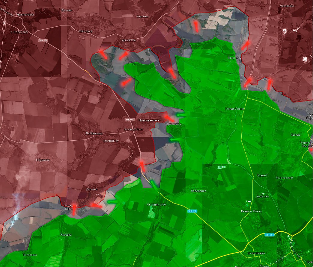 Также продолжаются бои в районе Черкасской Конопельки и по трассе на Суджу в районе съезда на Махновку — российские войска, вероятно, хотят охватить Суджу с юга.