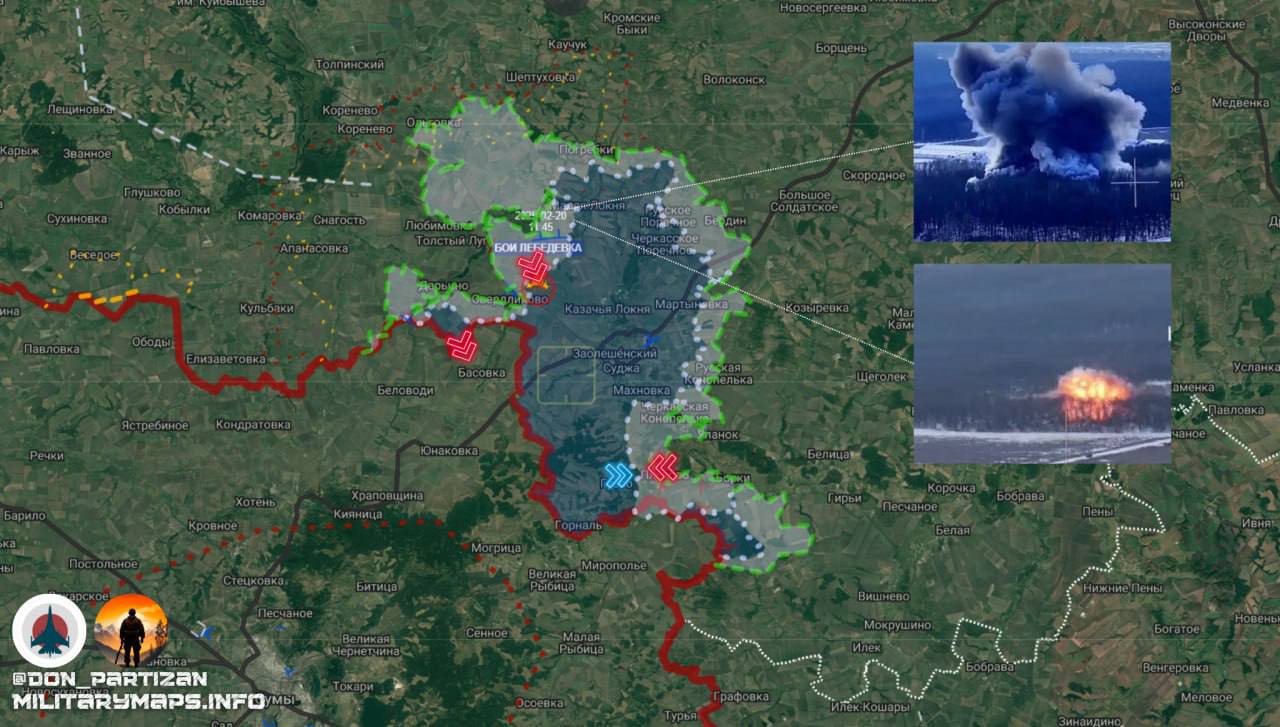 Курское направление: Закрепление в Лебедевке и угроза окружения украинской группировки в Судже. Российские подразделения закрепились на южных окраинах Лебедевки, продолжая методично выдавливать противника с занятых рубежей. Восточнее Свердликово наши силы продвинулись вперёд, что расширяет оперативный контроль над направлением и создаёт условия для дальнейшего наступления.