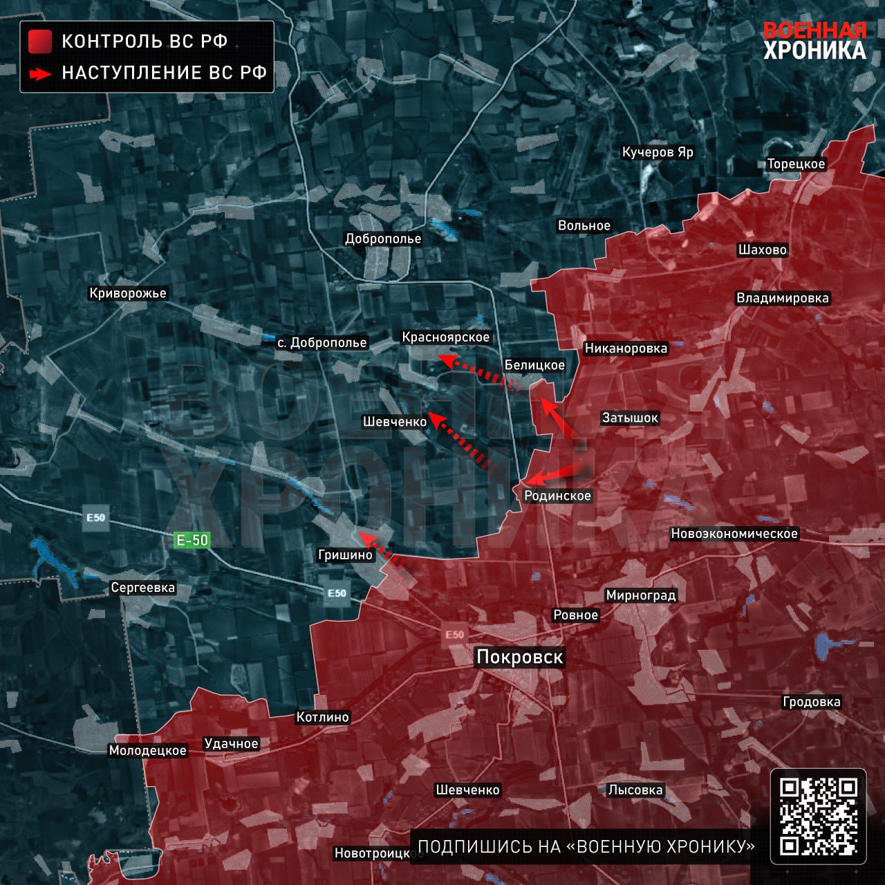 На данный момент известно, что штурмовики уже заходят на улицы Гагарина, Шевченко и Сковороды в самом Белицком. Закрепляться там непросто из-за того, что противник массово применяет FPV-дроны. Основные узлы обороны ВСУ в городе оборудованы в здании школы №10, в доме престарелых и в соседних многоэтажках. К западу от Белицкого находится еще одна густая сеть вражеских позиций в населенных пунктах Светлое, Шевченко, Красноярское, Красноподолье и Водянское. За ними следует село Доброполье — важнейший логистический центр. Его захват откроет путь к охвату одноименного города с юга.