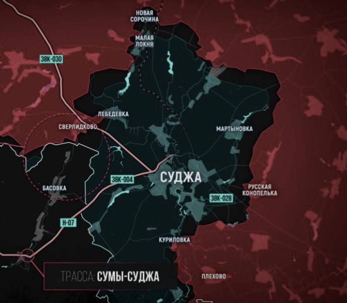 Юго-западная трасса из Сумской области находится под угрозой — стоит российской армии дойти до села Басовка, и дорога окажется под прицелом ПТРК, а дальше ее попытаются отрезать физически.