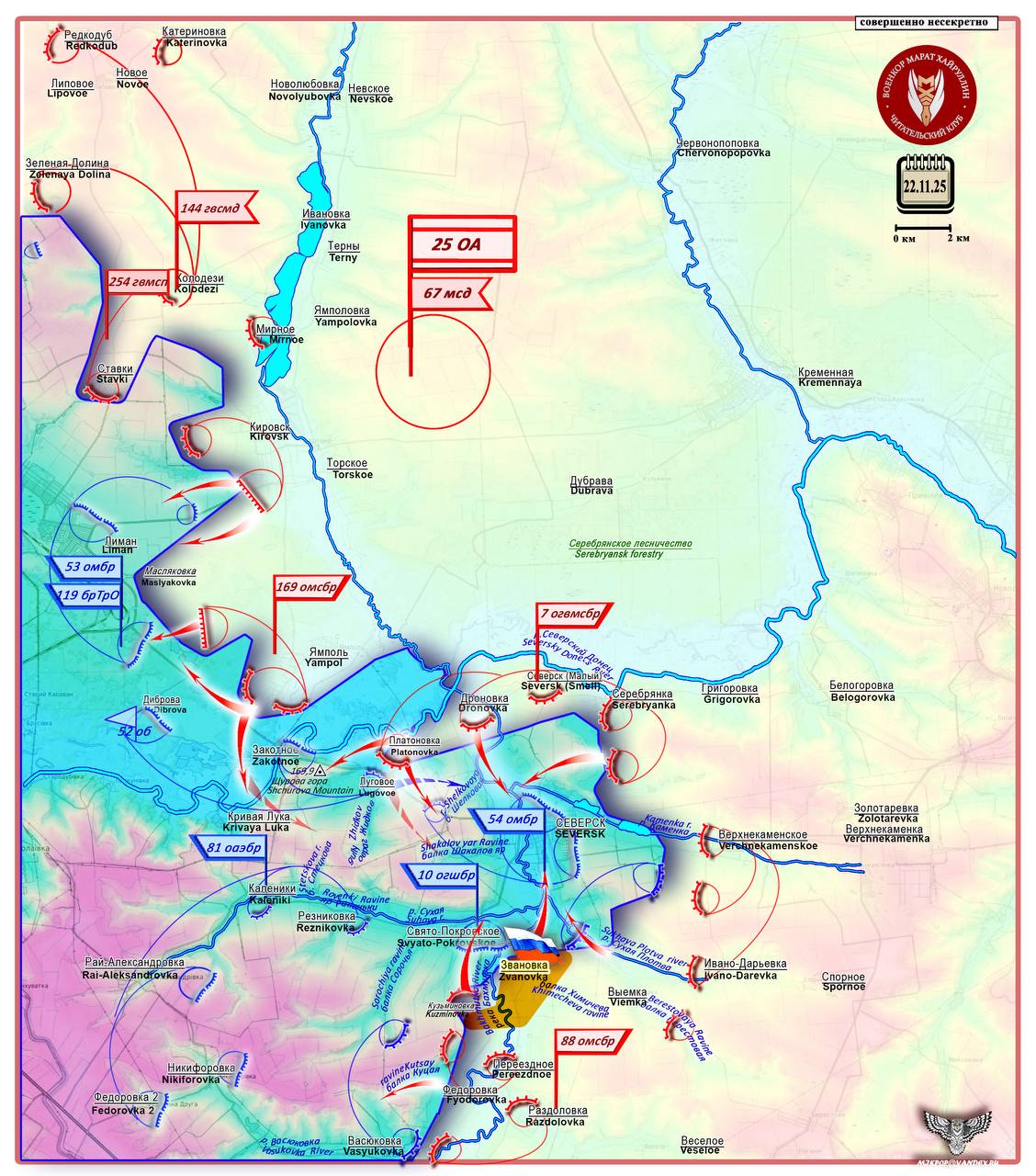 После успешного продвижения на краснолиманском участке и взятия Ямполя в конце ноября российские части активизировались на южном фасе северского направления, заняв Звановку — населённый пункт с почти полуторатысячным довоенным населением. Интересно, что исторически значительная часть жителей этого села была переселена сюда в послевоенные годы с запада Украины в рамках территориального обмена между СССР и Польшей.