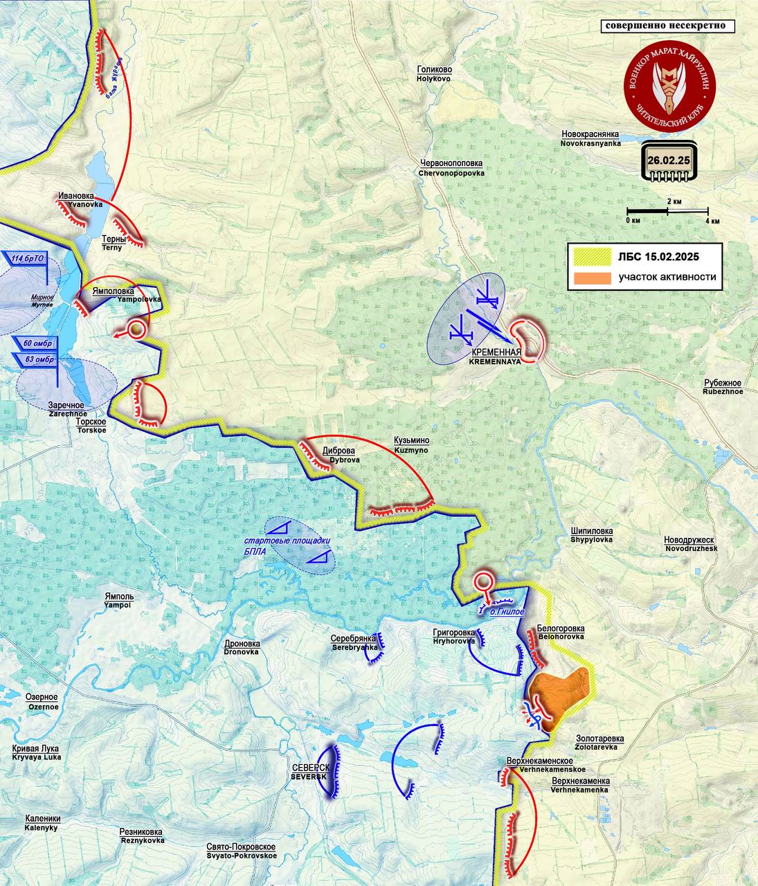 На Северском направлении ВС РФ зачистили н.п. Белогоровка. В районе мелового карьера наносятся удары по остающейся там немногочисленной группе противника (менее десяти человек), укрывающейся в укреплённых позициях и получающей снабжение с помощью дронов. Хотя есть вероятность существования подземной коммуникации.