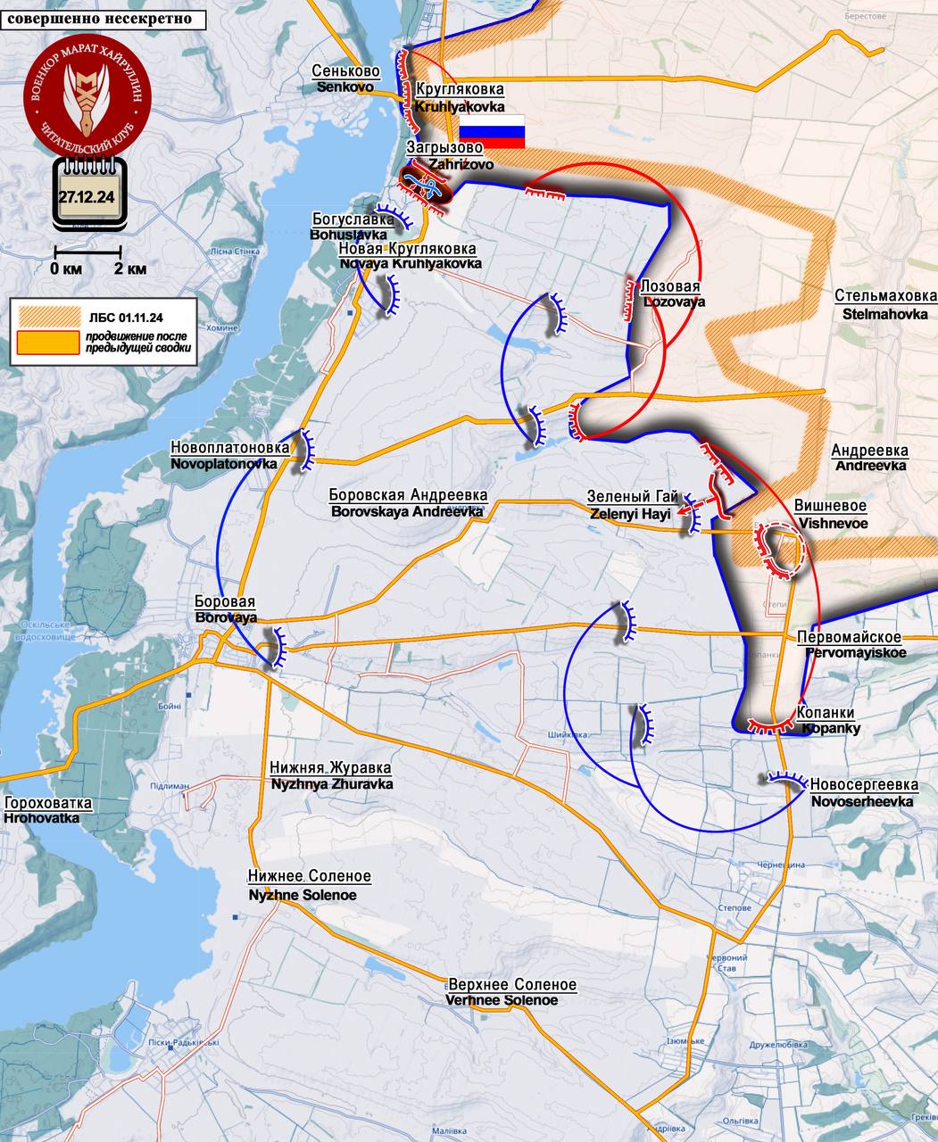 Вероятнее всего, сейчас здесь будет накопление сил для дальнейшего продвижения вглубь обороны противника как в направлении Богуславки, так и в направлении Новой Кругляковки. Это впоследствии может привести с формированию охвата территории севернее линии Новая Кругляковка- Лозовая.