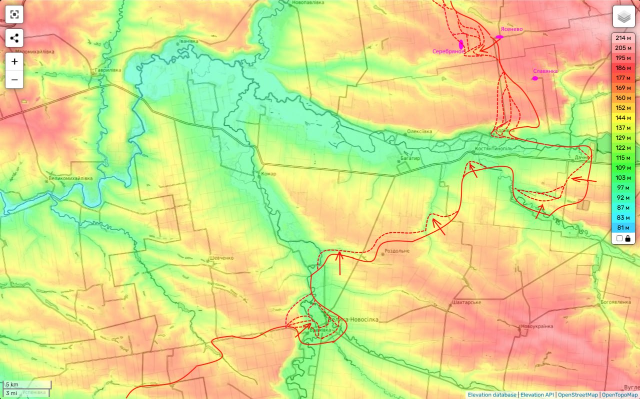 Новопавловское направление на 31.01.25: на Константинополь… Задумка следующей фазы нашего наступления на Новопавловском направлении постепенно обретает ясность. Наши части атакую в Андреевке (с севера) и на Константинополь (с юга), создают ситуацию оперативного окружения для гарнизона противника в н.п. Улаклы и Константинополь. Причем, вчера были подвижки, как в первом (прошли уже почти к центру Андреевки), так и во втором (противник отброшен на окраины Константинополя) случае. Причем, не стоит забывать об атаках восточнее на Богатырь и севернее на Алексеевку. И это дает нам основание надеяться на дальнейшее ухудшение для противника ситуации в этом районе.
