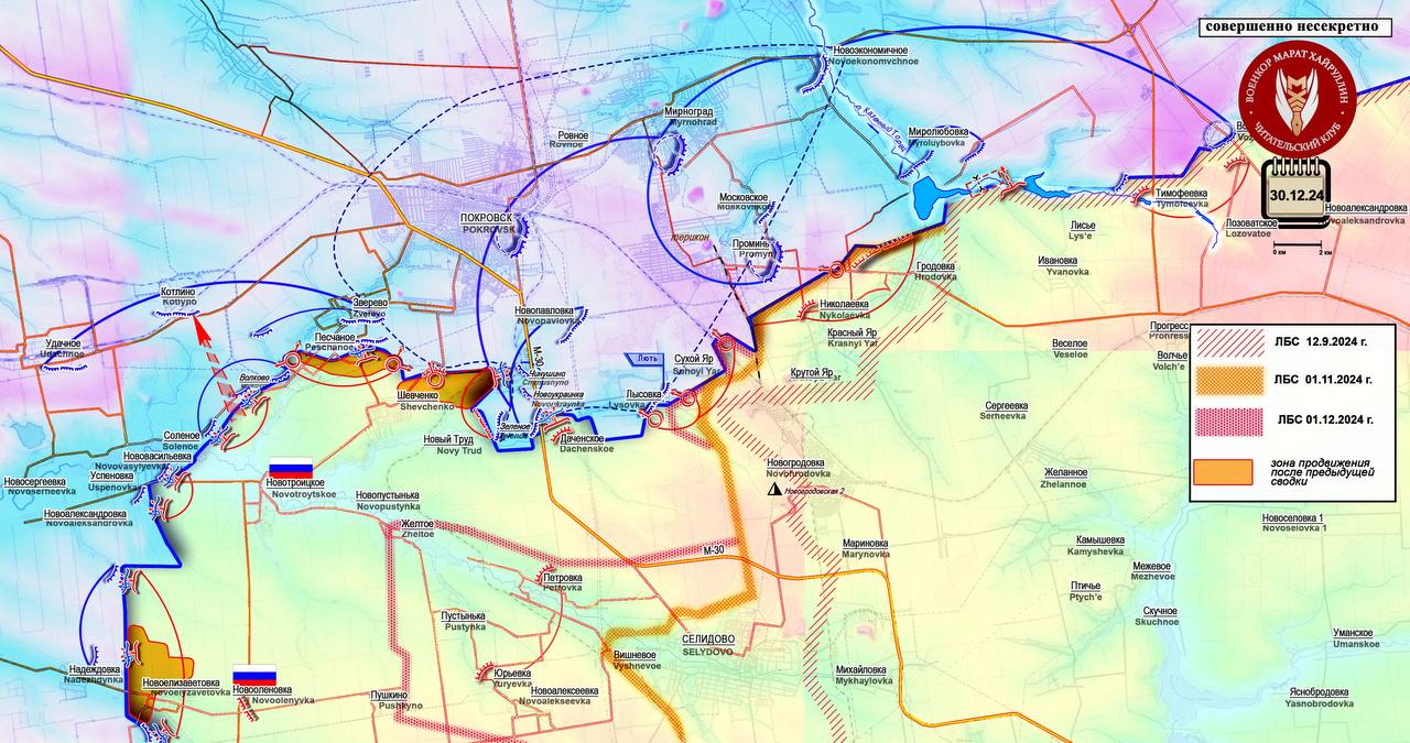 Продвижение армии России к Нескучному угрожает Времьевке. Короткая сводка с фронта 30 декабря 2024 года.
