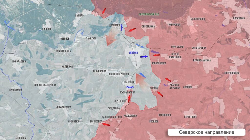 | Северское | Завершена зачистка Фёдоровки, идут ожесточённые бои на подступах к Северску и за Ямполь. |