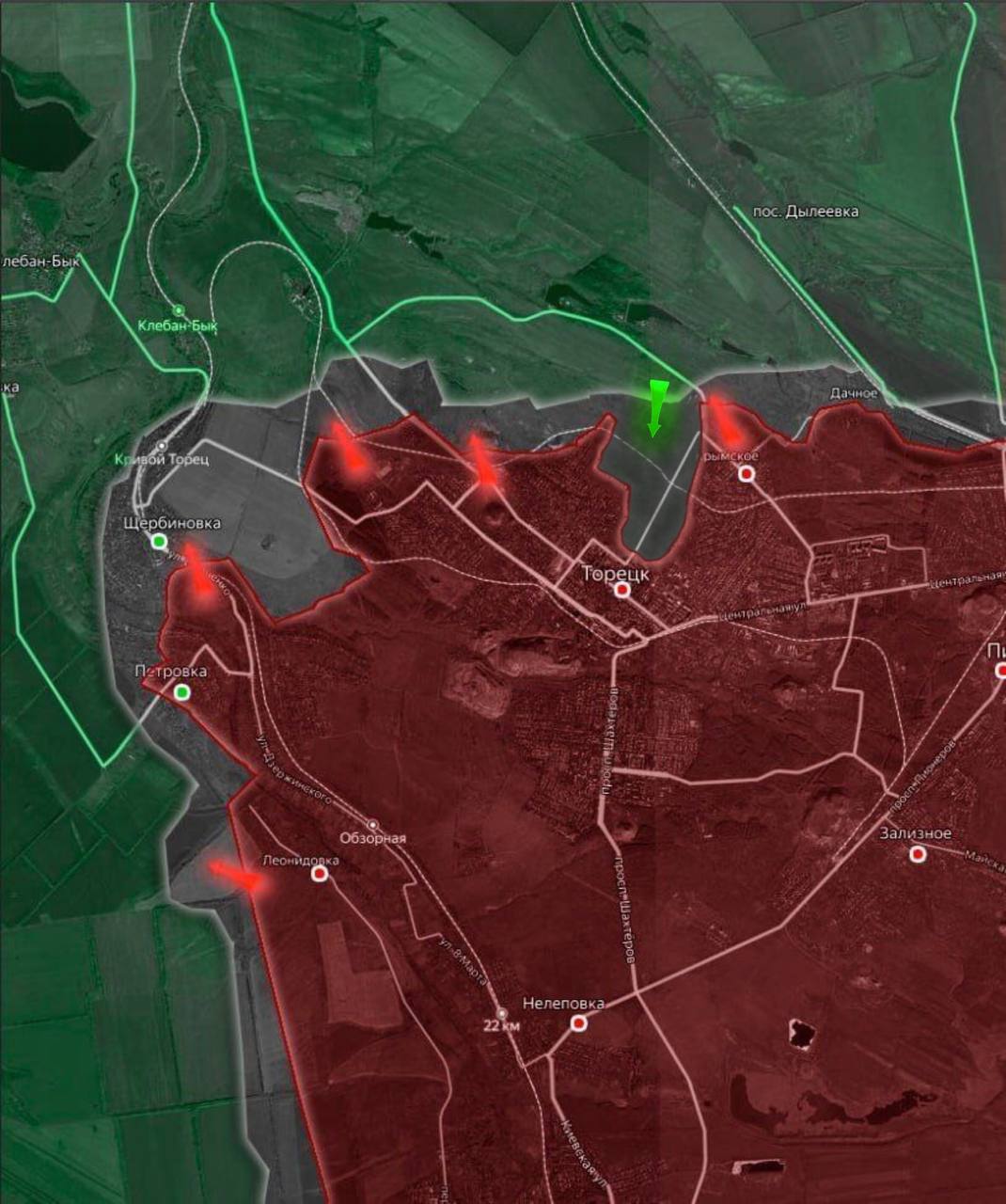 На Торецком направлении украинские войска смогли вклиниться в оборону ВС РФ в населенном пункте Торецк, замедлив тем самым наступление российской армии на н.п. Константиновка с юго-восточной стороны.