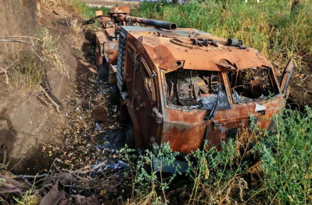 Российский дроноводы вычислили и поразили несколькими FPV-дронами украинскую колесную САУ