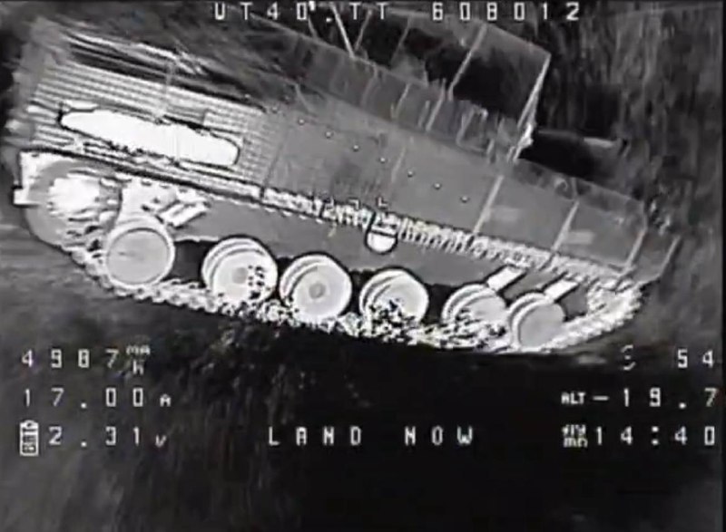 Кадры со стороны противника на уничтоженный русскими FPV-дронами украинский танк