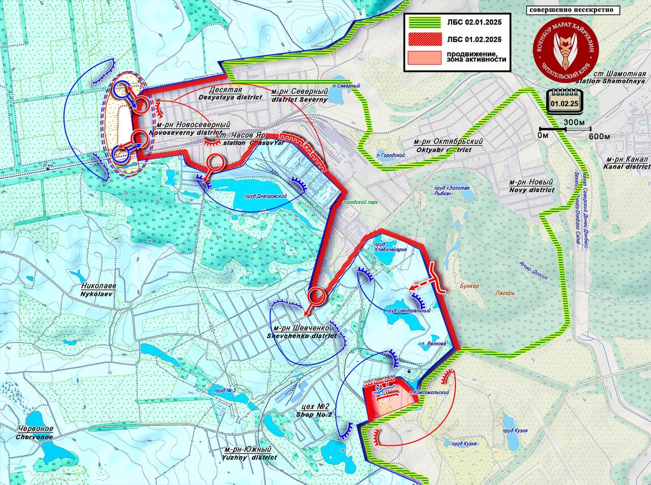 В районе Часова Яра российские вооружённые силы продвигаются к микрорайону Шевченко одновременно с нескольких направлений. С востока, дочищая лесной массив, наши подразделения давят на противника, пытающегося усилиться на позициях между прудами. А с юго-востока ВС РФ расширили контроль, и передовые отряды работают на окраинах микрорайона.