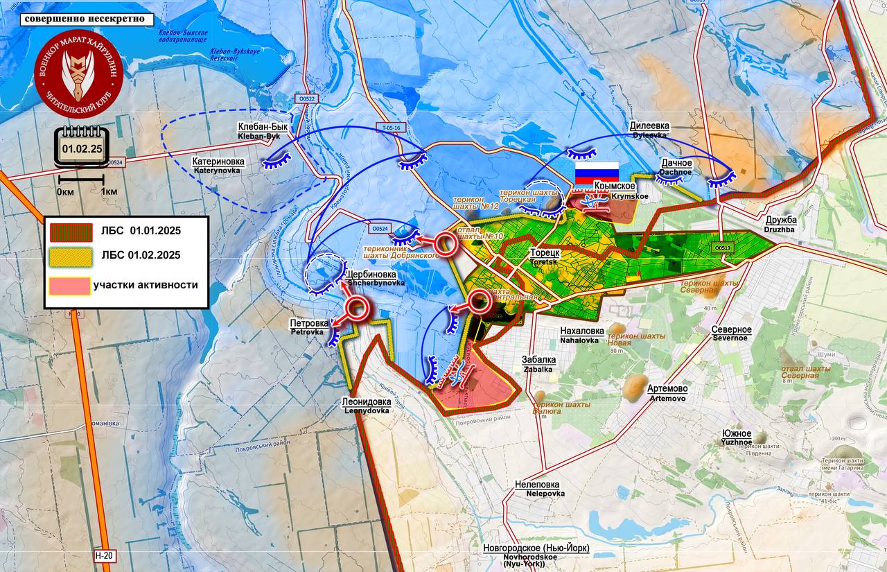 Западный фронт Торецка: Российские подразделения вытеснили ВСУ, заняв линии опорных пунктов времён АТО; активизировались действия в направлении Щербиновки и Петровки.