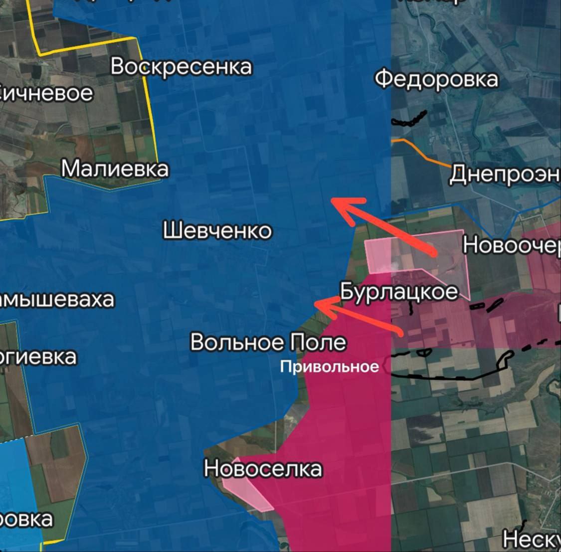 ВС РФ продвинулись на Великоновосёлковском направлении. После освобождения Бурлацкого и Привольного Армия России продвинулись ещё на 4,5 км, сообщает источник.