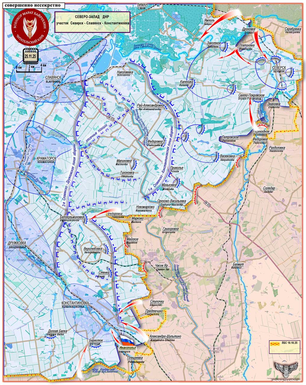 Российские войска на данный момент продвигаются сразу по ряду участков фронта. Подразделения РФ практически полностью разгромили украинские формирования, пытавшиеся удержать Шахово и близлежащие населённые пункты. По словам Пушилина, большая часть Красноармейска уже перешла под контроль России, а в районе границы с Днепропетровской областью формируется более глубокая буферная зона. На этом фоне поступают сведения, что украинское командование оставило порядка тысячи военнослужащих в районе между Димитровым и Красноармейском, и сейчас эти силы безуспешно пытаются вырваться из окружения.