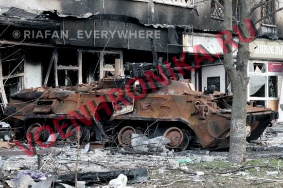 У подъезда лежит лепешка из железа: «Это была машина?!». Гул боя и разрывов вдалеке не стихает ни на минуту — к этому грохоту быстро привыкаешь. Всюду запах гари, отстрелянные гранатометные трубы, ковры настрела от пушек и пулеметов. Мертвые люди лежат во дворах, многих не успели убрать.