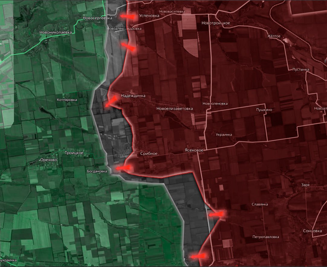 На Покровском направлении российские войска продвинулись, потеснив Вооруженные силы Украины из нескольких «карманов» с опорными пунктами, заняв лесополосы к северу от Успеновки, между Надеждинкой и Серебряным, а также восточнее Надеждинки. На участке у Запорожья и окрестностях Преображенки также продолжаются тяжелые боестолкновения.